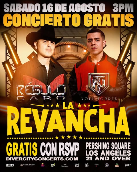 Los Ángeles, CA – La capital del entretenimiento se prepara para recibir uno de los conciertos más esperados del verano. Este sábado 16 de agosto, Pershing Square será el punto de encuentro para miles de fans de la música regional mexicana que podrán disfrutar de una noche completamente gratis con un cartel de artistas de alto calibre.